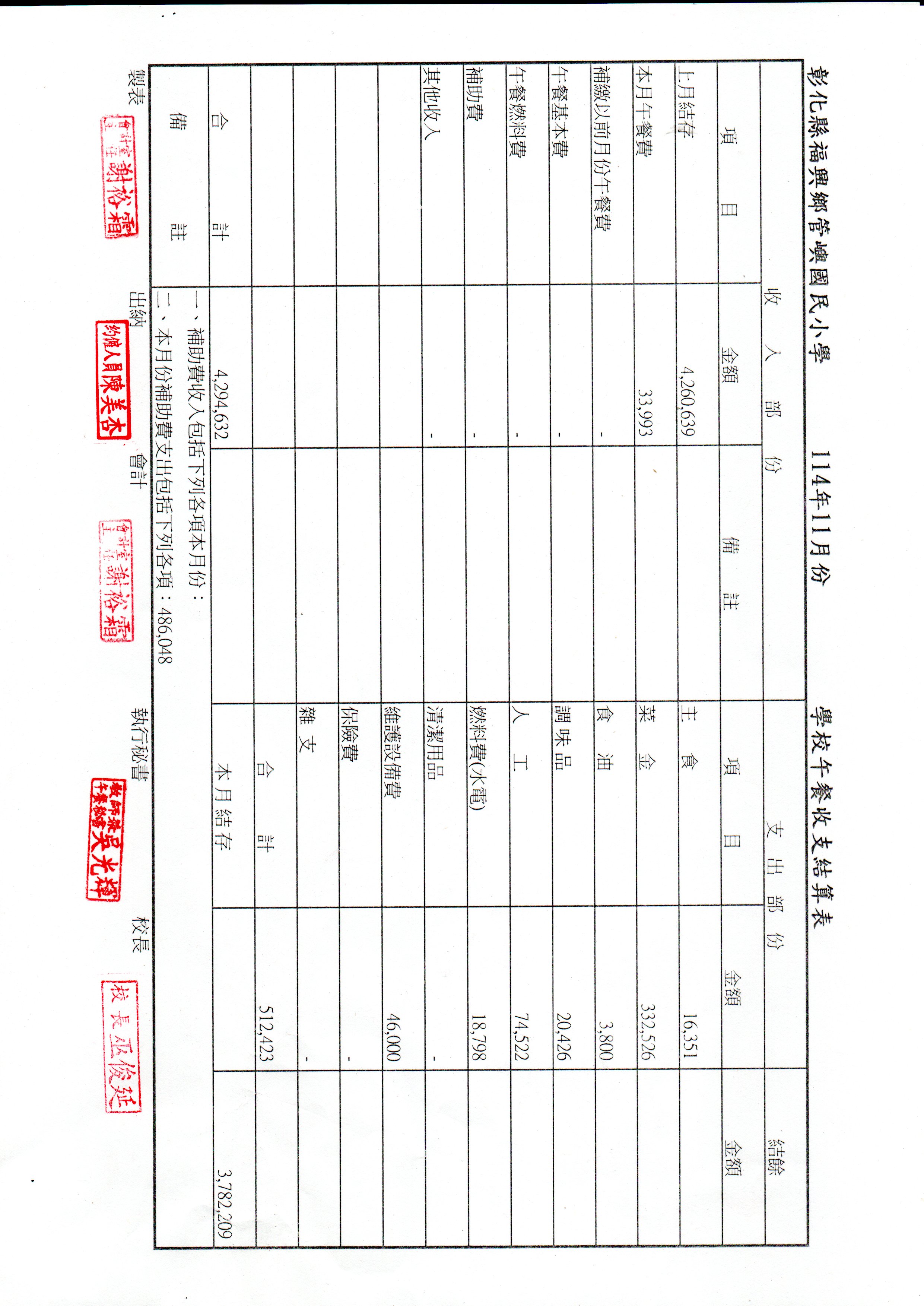 114年度11月份午餐收支結算表