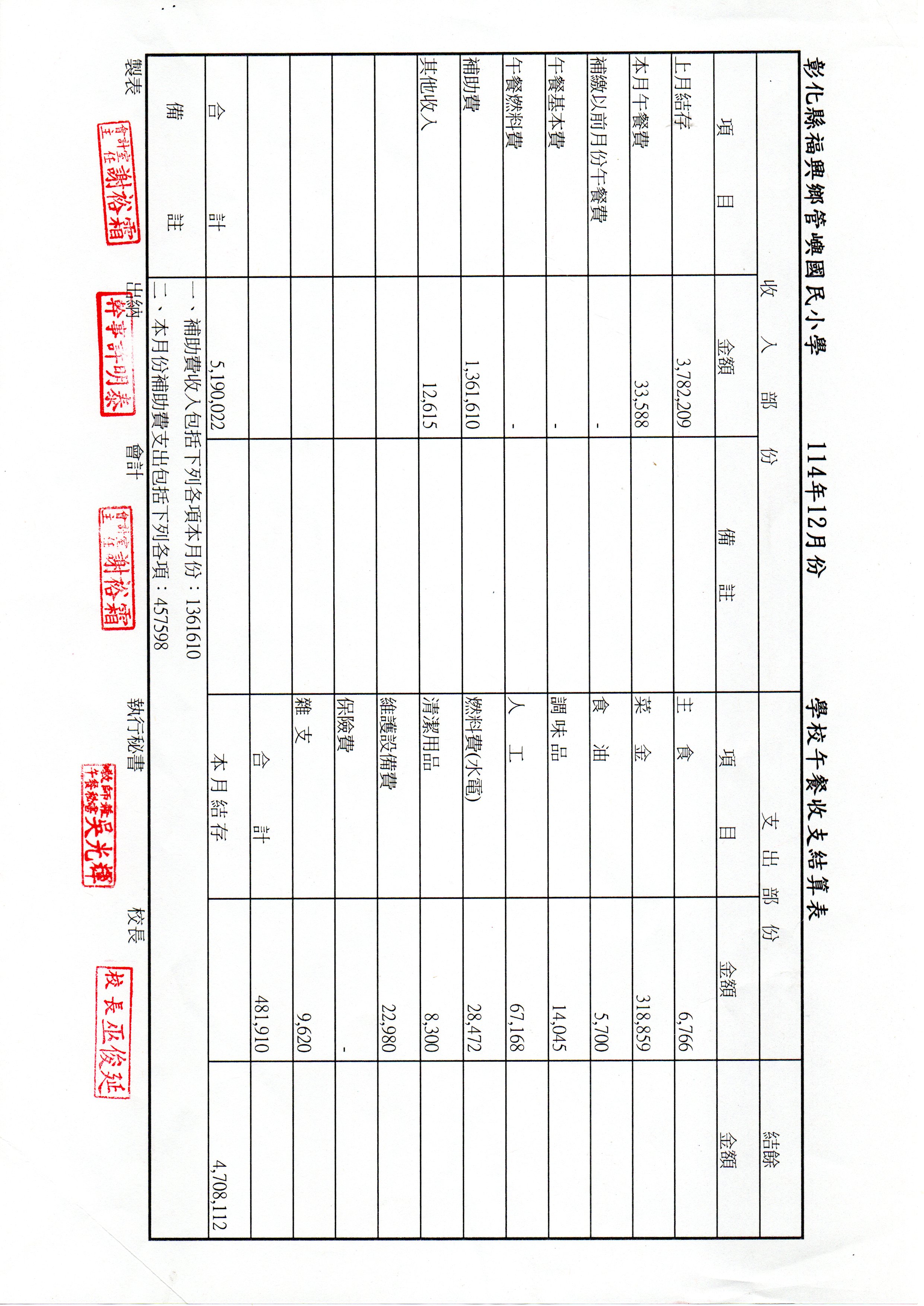 114年度12月份午餐收支結算表